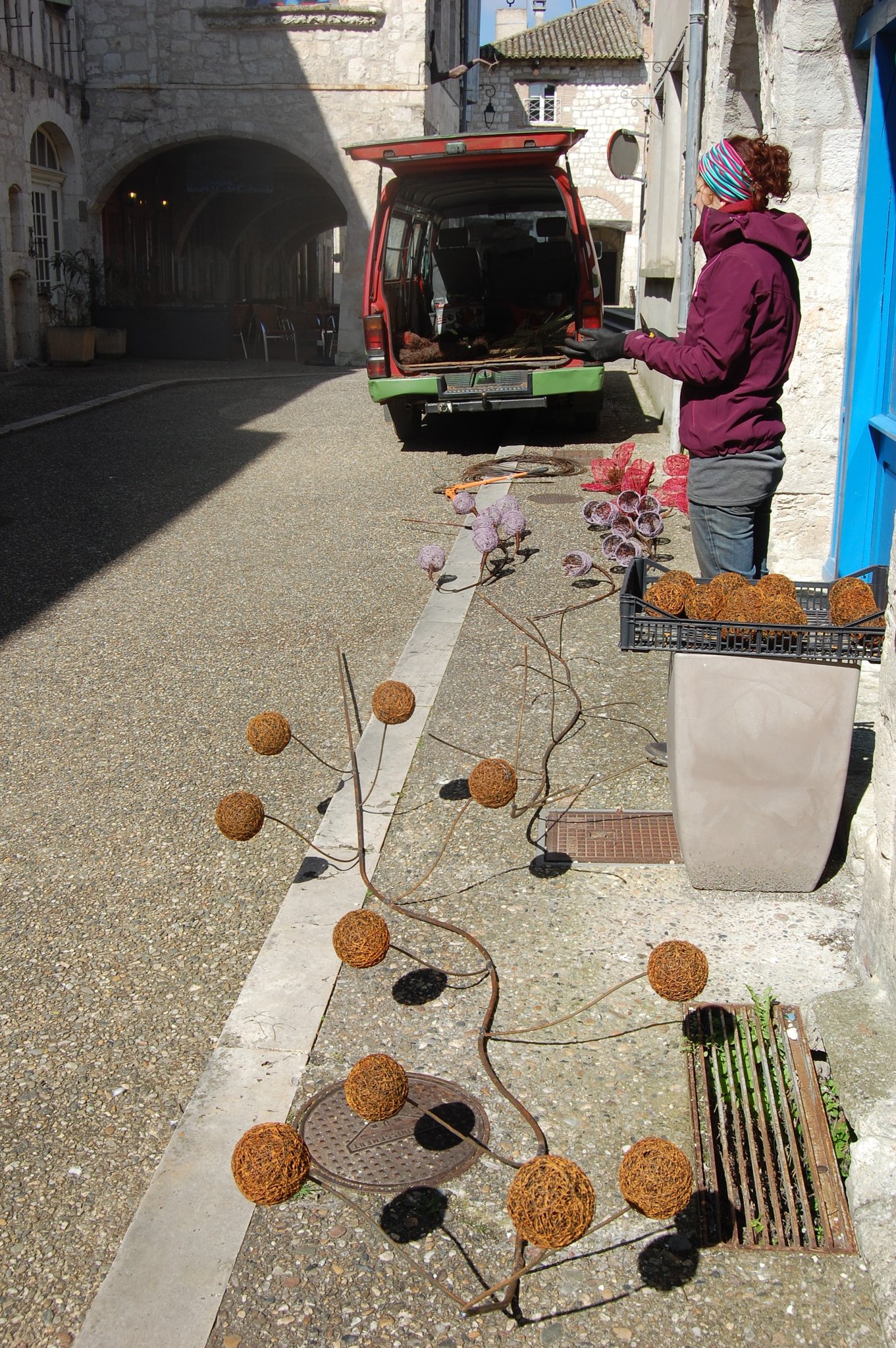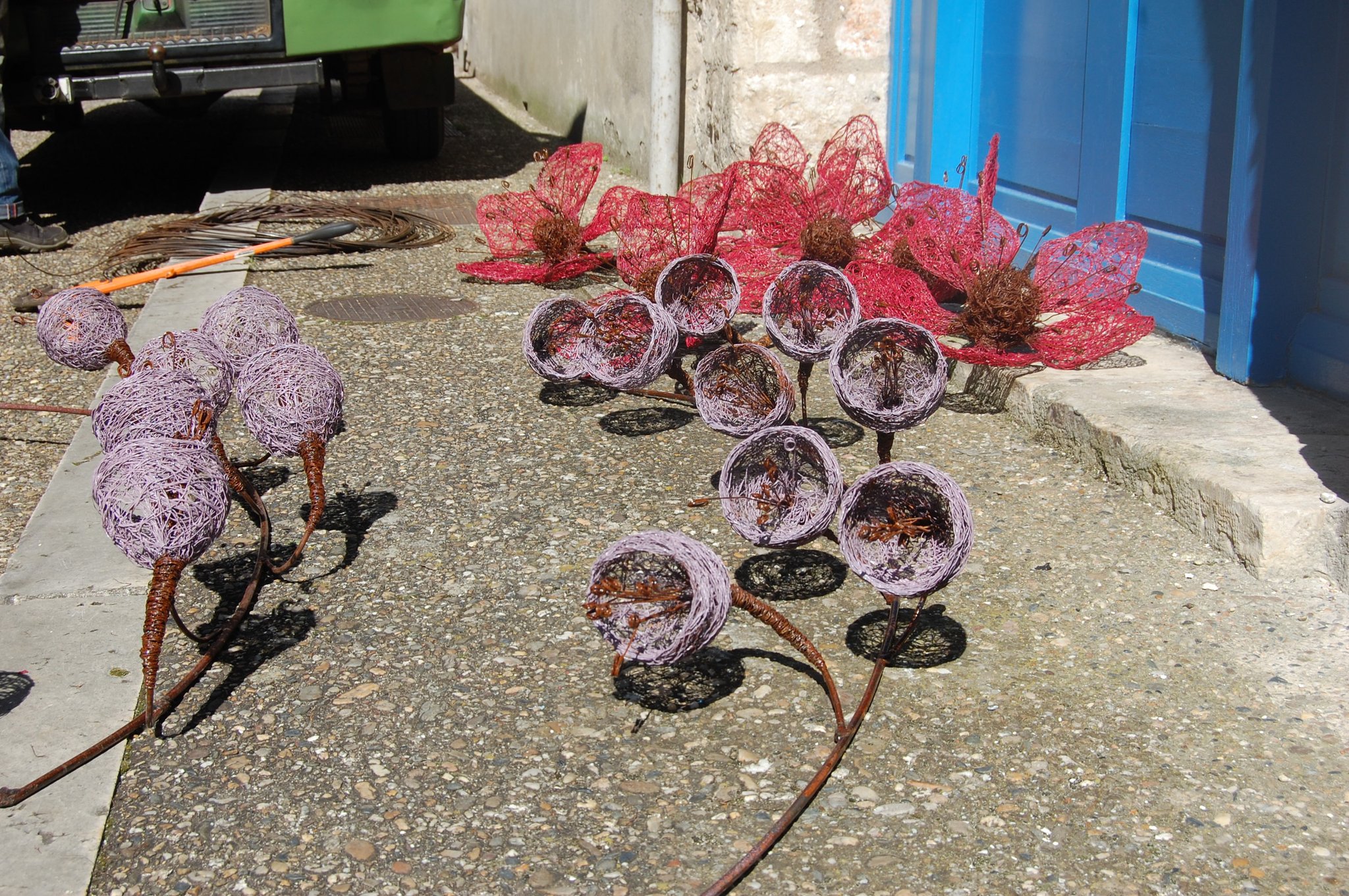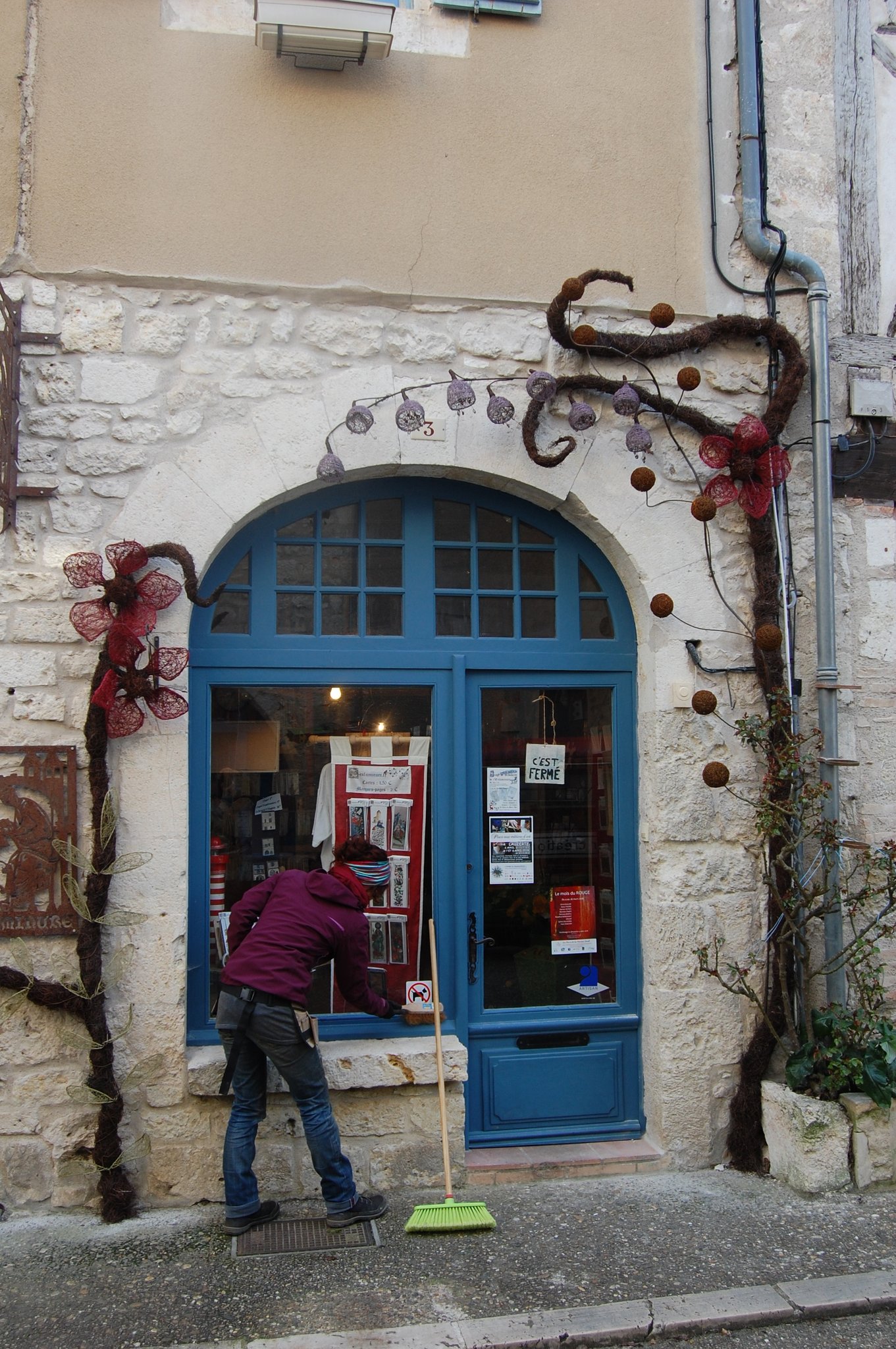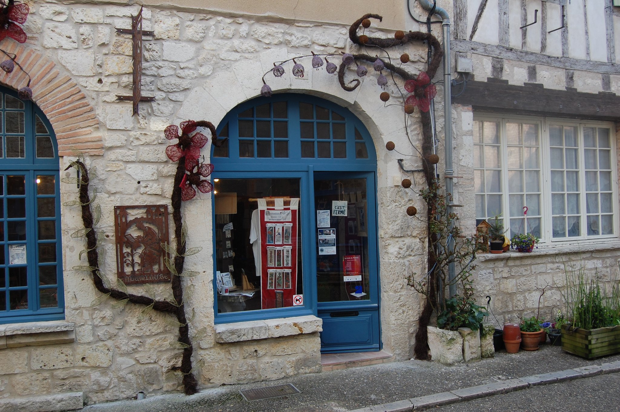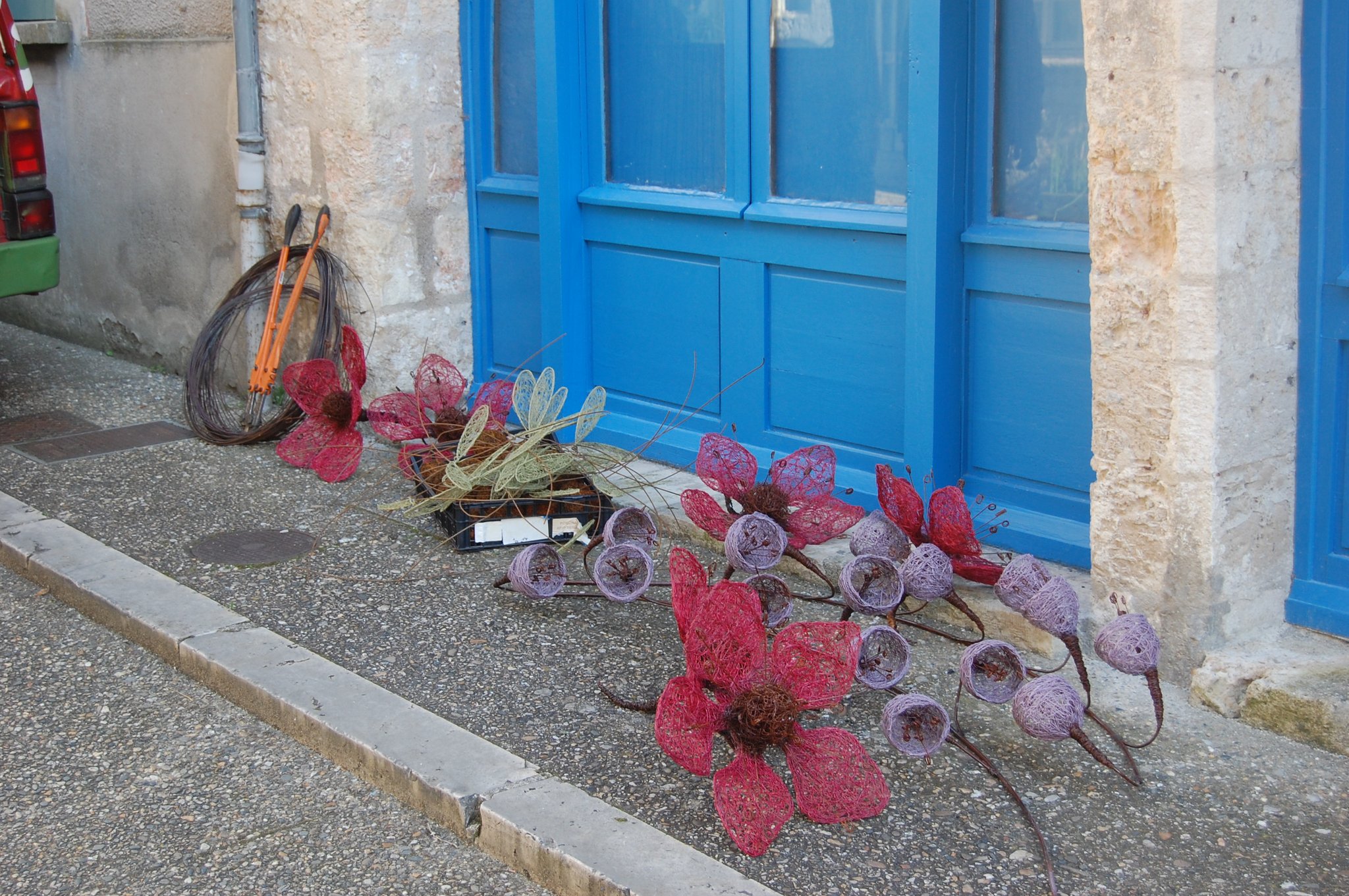 Pour enluminer notre façade nous avons fait appel au talent de Lya et Laurent Marino de l'entreprise Atmosfleur Créations située à St Antonin Nobleval dans le Tarn et Garonne.. C'est ainsi que tel mes enluminures, ils ont décoré le mur de fleurs, clochettes et feuillage en métal. Merci beaucoup à eux.
