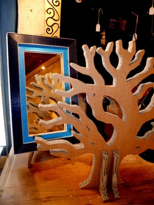 Cadres, miroirs, meubles, bijoux et objets de décoration, l'entreprise Couleurs et Carton fabrique toutes ses créations avec du papier et du carton.