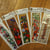 Lot de cinq marque-pages différents imprimés sur papier 350 g d'après des enluminures réalisées à l'atelier sc-enluminure. Format 7 cm x 21 cm présentés sous blister.